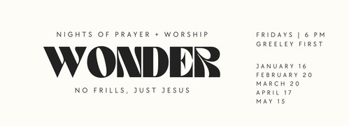 Wonder is a monthly night of worship, prayer, and testimony for women at Greeley First Assembly. We’re creating a space for breakthrough, healing, and the presence of God, free from pressure or production. Whether it’s your first time or your tenth, you’re welcome here. Come ready to encounter the Lord and leave encouraged.