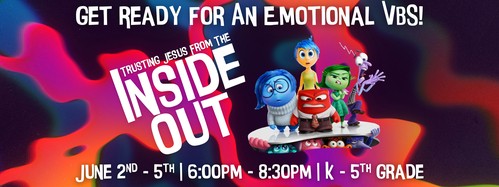 Join us for an exciting week of fun, faith, and feelings as we explore the Bible through the lens of Disney-Pixar’s Inside Out! Just like Joy, Anger, Fear, Sadness, and Surprise, the Bible is filled with moments when emotions play a big role in trusting God and following His plan.