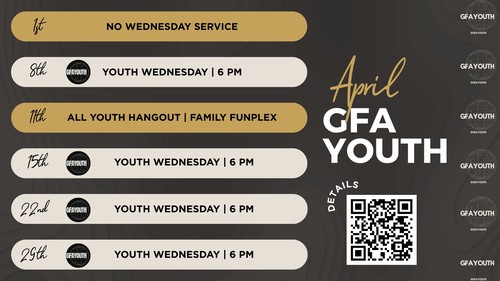 GFA Youth meets on Wednesday nights during MIDWEEK, which operates on a semester schedule. Check the church events calendar to see when MIDWEEK is happening next!